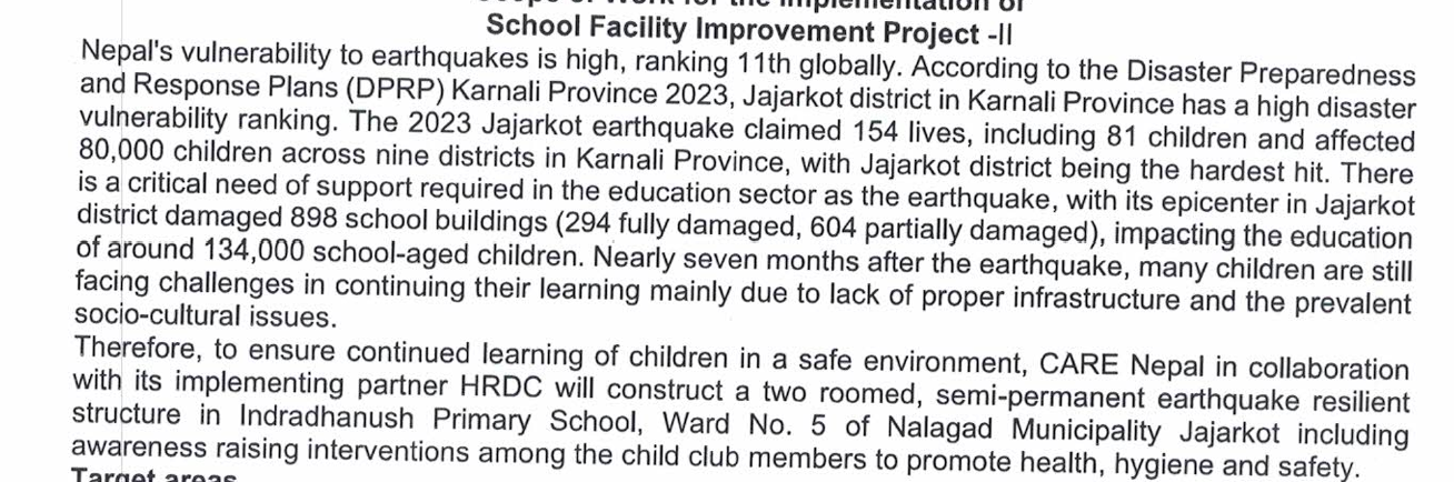 Nepal's Vulnerability to earthquakes is high,ranking 11th globally ,according to the Disaster preparedness and response plans ( DPRP) Karnali Province 2023,Jajarkot District .