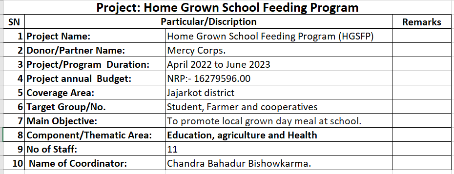Home Grown School Feeding Program